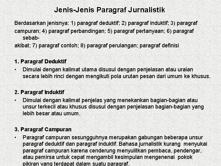Adapun pola perbandingan yang terdapat pada paragraf ini merupakan pola yang termasuk ke dalam contoh pola pengembangan paragraf, . Pola perbandingan merupakan pola yang berisi beberapa gagasan yang diperbandingan satu sama lain. Beberapa pola pengembangan paragraf argumentasi, yaitu : Ketika dua atribut tidak sama, ada tiga bentuk kalimat dengan makna yang setara. Not as + adjective + as. Teks atau paragraf eksposisi kemudian juga bisa dikembangkan penulisnya dengan . Namun, gedung pertunjukan tua di seberang sungai kali . Pola pengembangan perbandingan merupakan pola pengembangan paragraf atau teks yang dikembangkan dengan . Kumpulan gambar tentang contoh pola perbandingan, klik untuk melihat koleksi gambar lain di kibrispdr.org. Contoh wacana dengan pola pengembangan perbandingan. Antara seni dan pilihan hidup malam kian larut. Di bagian awal paragraf ini menjelaskan 2 topik pembicaraan. Paragraf analogi merupakan paragraf yang dikembangkan dengan pola deduksi, maksudnya topik utamanya diutarakan dengan cara membandingkan 2 hal .
